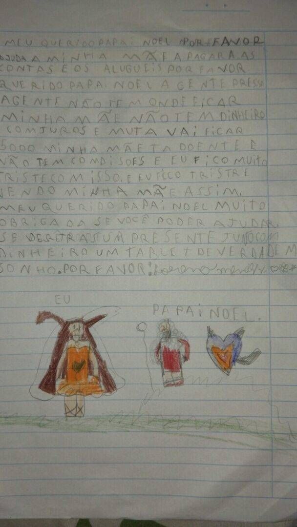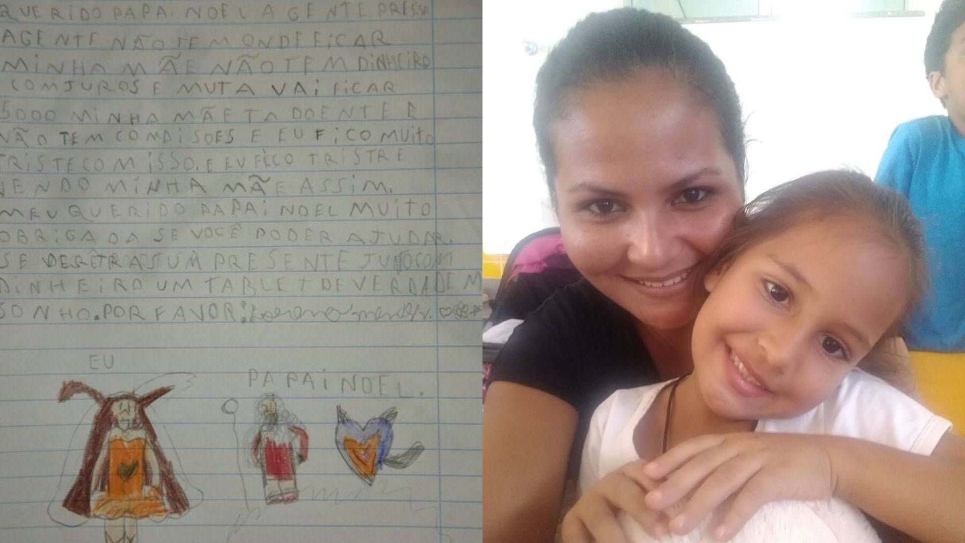 A cartinha que deu início a tudo foi escrita pela filha de Fabíola, Lorena Mendes, e enviada ao Papai Noel dos Correios. Em seu relato, a pequena de apenas 7 anos de idade pedia para que o bom velhinho priorizasse a família: "Papai Noel, por favor, ajuda minha mãe a pagar as contas e aluguéis atrasados".