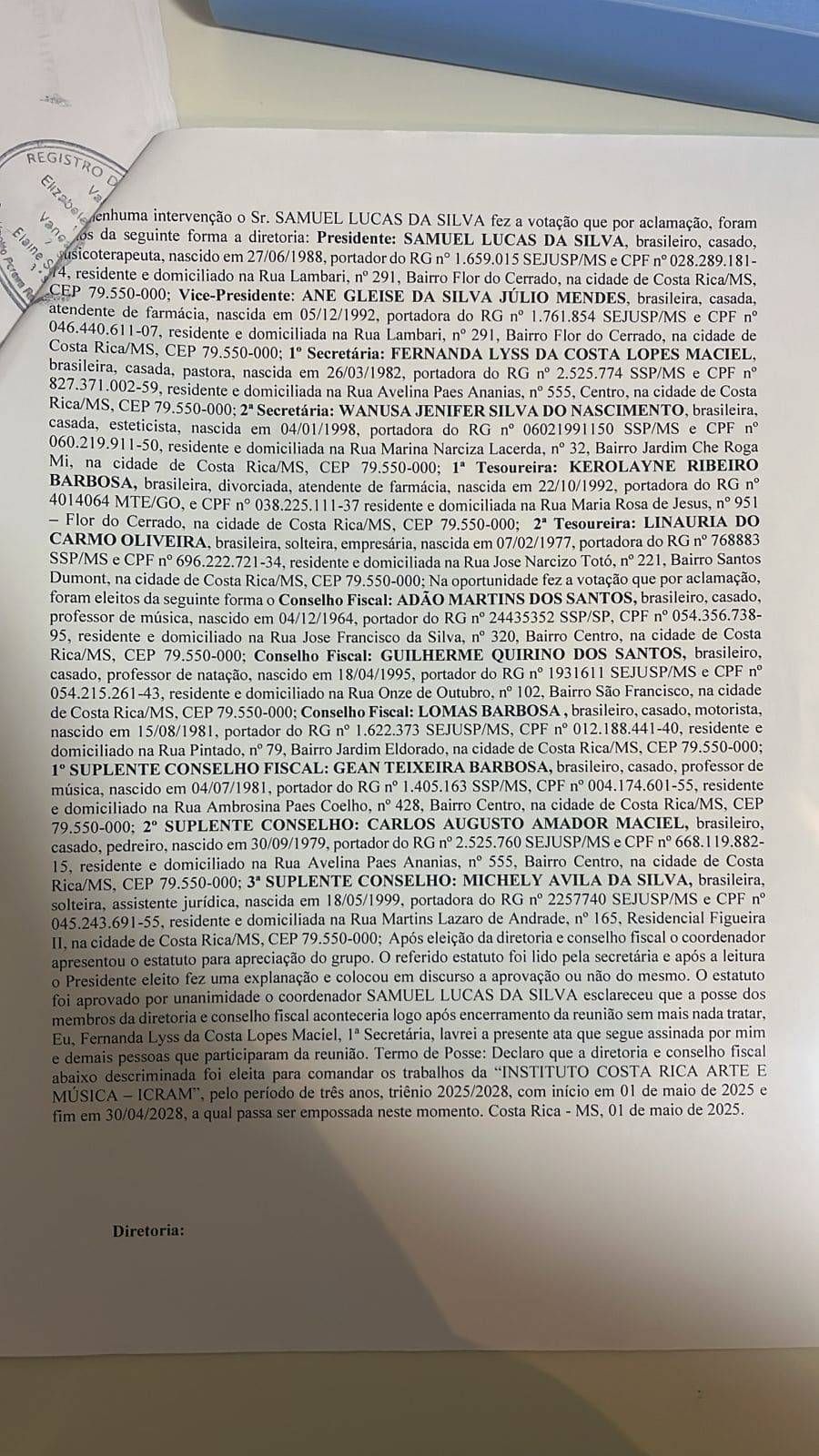 Veja abaixo a ata com os nomes dos respectivos membros no ICRAM: