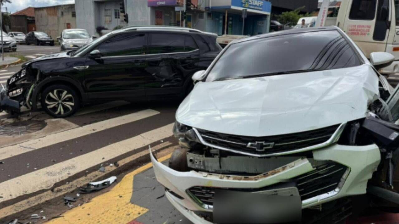 Câmeras de segurança registraram um acidente que terminou em uma grave colisão no cruzamento entre as ruas Rui Barbosa e Calarge, no Centro de Campo Grande. O Chevrolet Cruze teria avançado o sinal pela faixa exclusiva de ônibus e colidido com um Volkswagen T-Cross, na manhã desta terça-feira (13). Em menos de 24 horas, três colisões foram registradas no trecho.