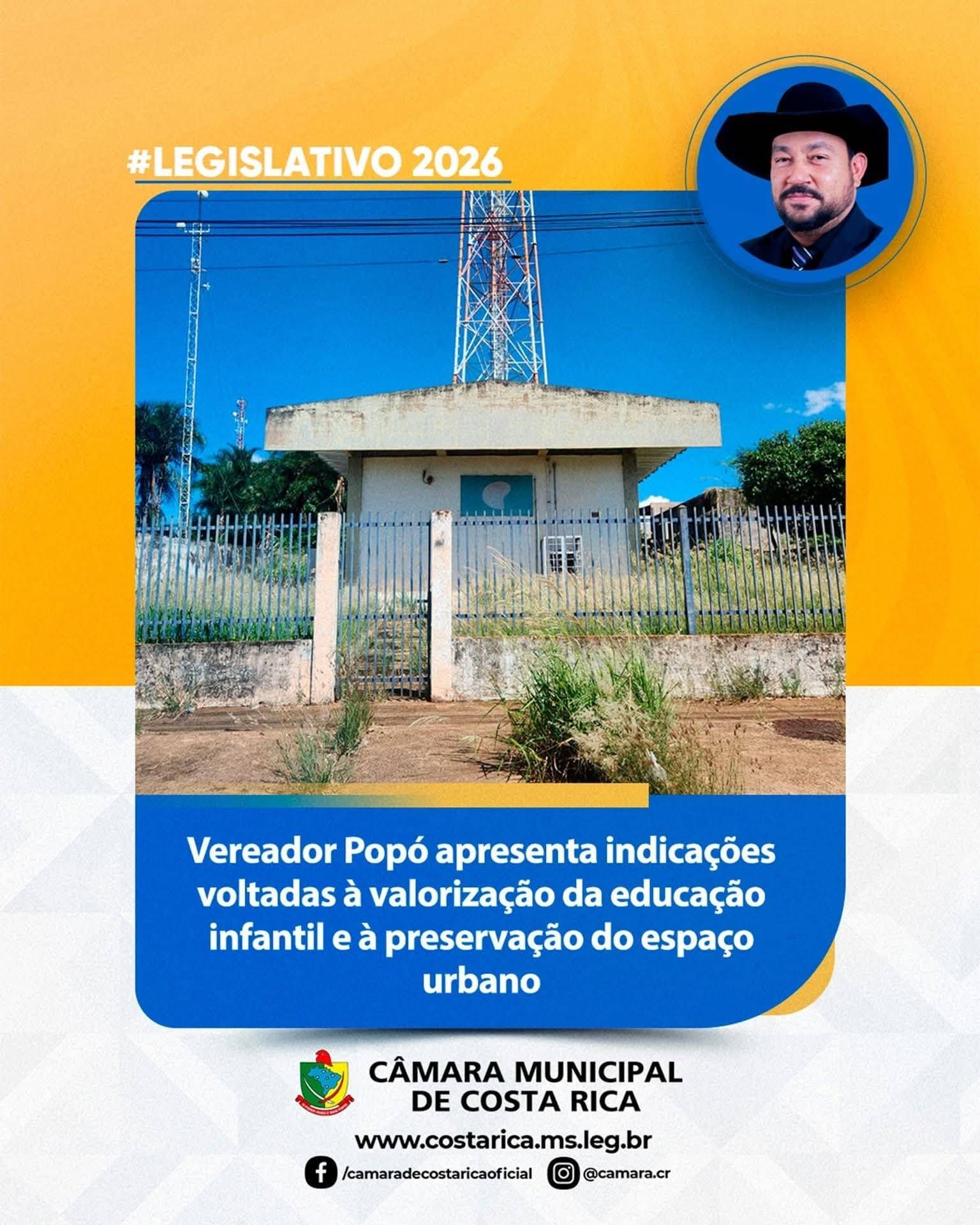 A Câmara Municipal de Vereadores de Costa Rica encaminhou duas indicações de autoria do vereador Alecksander da Silva Pimenta - Popó, que tratam de pautas essenciais para o desenvolvimento do município: a valorização da educação infantil e a preservação da organização urbana.